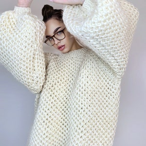 Chunky handknit Merino wool soft milk sweater Loose Fit Sweater Cable knit big pullover for woman Hand knit Pastel sweater Alpaca sweater