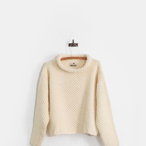 Vintage Carraigdonn cream knit Fisherman Irish wool sweater